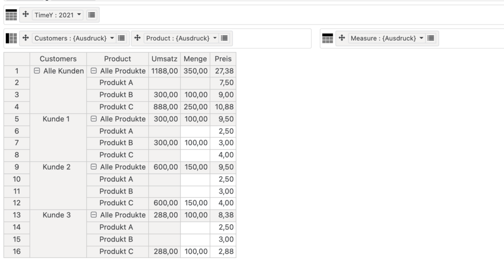 | Customer | Product | Menge |