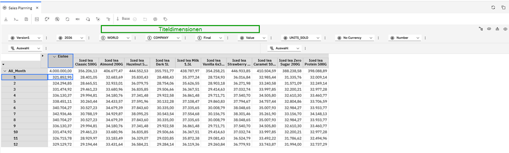 Meldet sich ein User im Datenmodell an und öffnet einen Cube, erscheint die Cubeview. Ein Doppelklick auf den Cube öffnet standardmäßig die „Default“-View – dazu später mehr. Zunächst geht es um die Titeldimensionen bzw. Kontextinformationen.