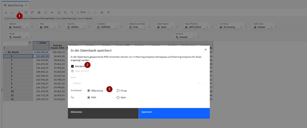 Das Öffnen eines Cubes gehört zu den täglichen Aufgaben in Planning Analytics. Wie beschrieben öffnet sich bei einem Doppelklick stets die vom Systemadministrator definierte Default-View, da das Speichern öffentlicher Ansichten spezielle Berechtigungen erfordert.
