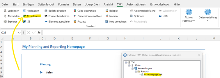 Die Lösung dafür sieht wie folgt aus. Wenn Du anstatt des Links zum Dateiverzeichnis den Anwendungspfad – hier Anwendungen/Reports/01 Homepage.xlsx – in den Cube }ClientSettings einträgst, funktioniert die Homepage auch weiterhin mit PAFE (Planning Analytics for Excel)!