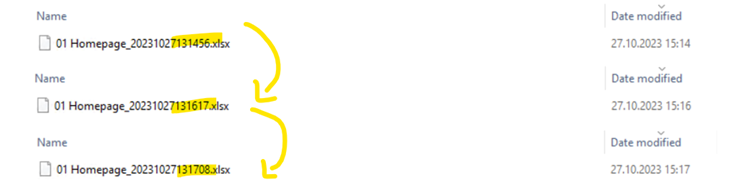 In Perspectives funktioniert dieser Prozess reibungslos, da sich der Dateiname nach jeder Aktualisierung des Berichts im Hintergrund nicht ändert. Das sah folgendermaßen aus: