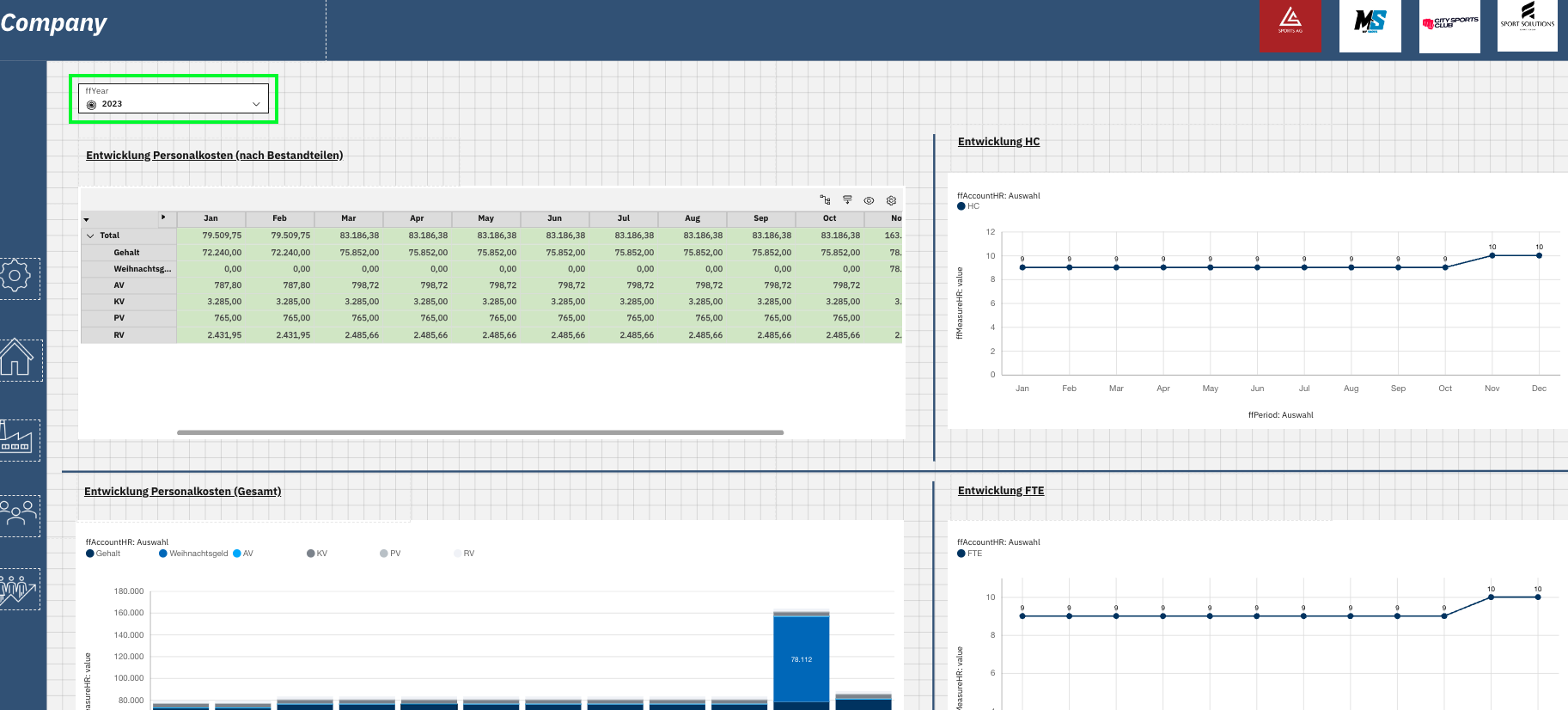 Das Selektorwidget bietet eine tolle Möglichkeit in PAW Dashboards mit unterschiedlichen Ansichten und Abbildungen benutzerfreundlich zu gestalten und kann so z.B. in einem Admin-Cockpit genutzt werden, um für eine Reihe von Registerkarten vorab das entsprechende Jahr und/oder die Company auszuwählen.